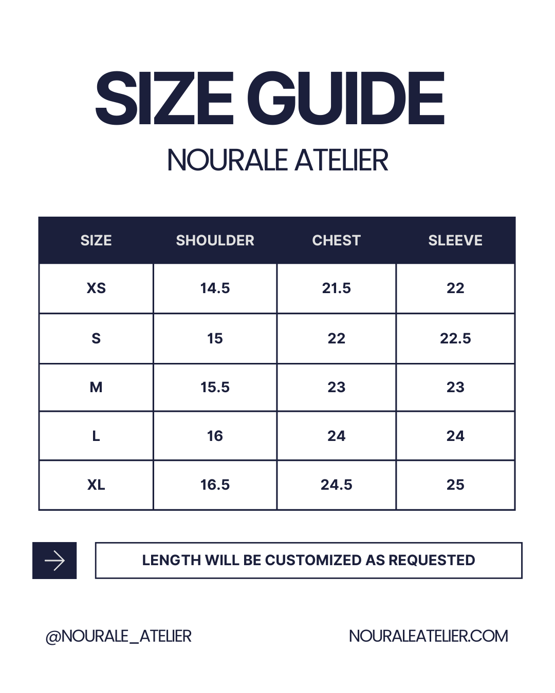 For custom sizing or personalized adjustments beyond our standard size chart,